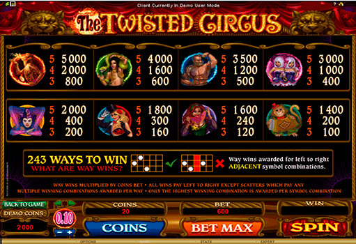Microgaming har tatt både wildsymbolet og bonusfunksjonene til et nytt nivå i dette spillet. Twisted Circus kan faktisk være med på å revolusjonere fremtidens spilleautomater, for at wildsymbolene er så gavmilde som i dette spillet har vi aldri opplevd tidligere. At spillet ikke har noen progressiv jackpot spiller ingen rolle, for dette er så underholdende på alle måter uansett. Spillet er også ganske billig i drift, for minsteinnsatsen starter på 0,01 og opp til 0,2 i din foretrukket valuta. Spillet har vært på markedet siden i fjor, men har fått noen oppdateringer siden spillet kom og i dag virker spillet som en av de mest moderne spilleautomatene vi har testet. Grafikken og designet må også få mye skryt.