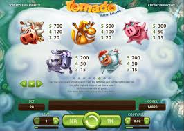 Når Net Entertainment lanserer et nytt spill, kaster tusenvis av kasinospillere seg på det som om det var en gryte med gull. Alle vil prøve det ut, evaluere det og kanskje bli den første til å vinne jackpotten? Den skandinaviske spillutvikleren har skapt så mange ekstremt populære spilleautomater gjennom tidene at man kun forventer det beste fra dem. Den nyeste spilleautomaten deres har gått navnet Tornado Farm Escape. Den lange tegneserien som dukker opp når man starter opp spillet fungerer som en introduksjonsvideo. Her finner man ut at temaet på Tornado Farm Escape handler om en bondegård, noe som var ganske klart utfra navnet. Livet på bondegården er hardt og dyrene må jobbe lange dager, men fra tid til annen kommer det en virvelvind forbi, en såkalt tornado. Dyrene bruker dette naturfenomenet til å stikke av fra bondegården – vinden drar dem opp og sender av gåre mot ukjent territorium. Tornado Farm Escape er en veldig fargerik spilleautomat med detaljerte symboler og søte animasjoner som vekker den til live. Net Entertainment skuffer aldri, selv om Tornado Farm Escape kanskje ikke kan måle seg med de aller beste maskinene de har skapt.
